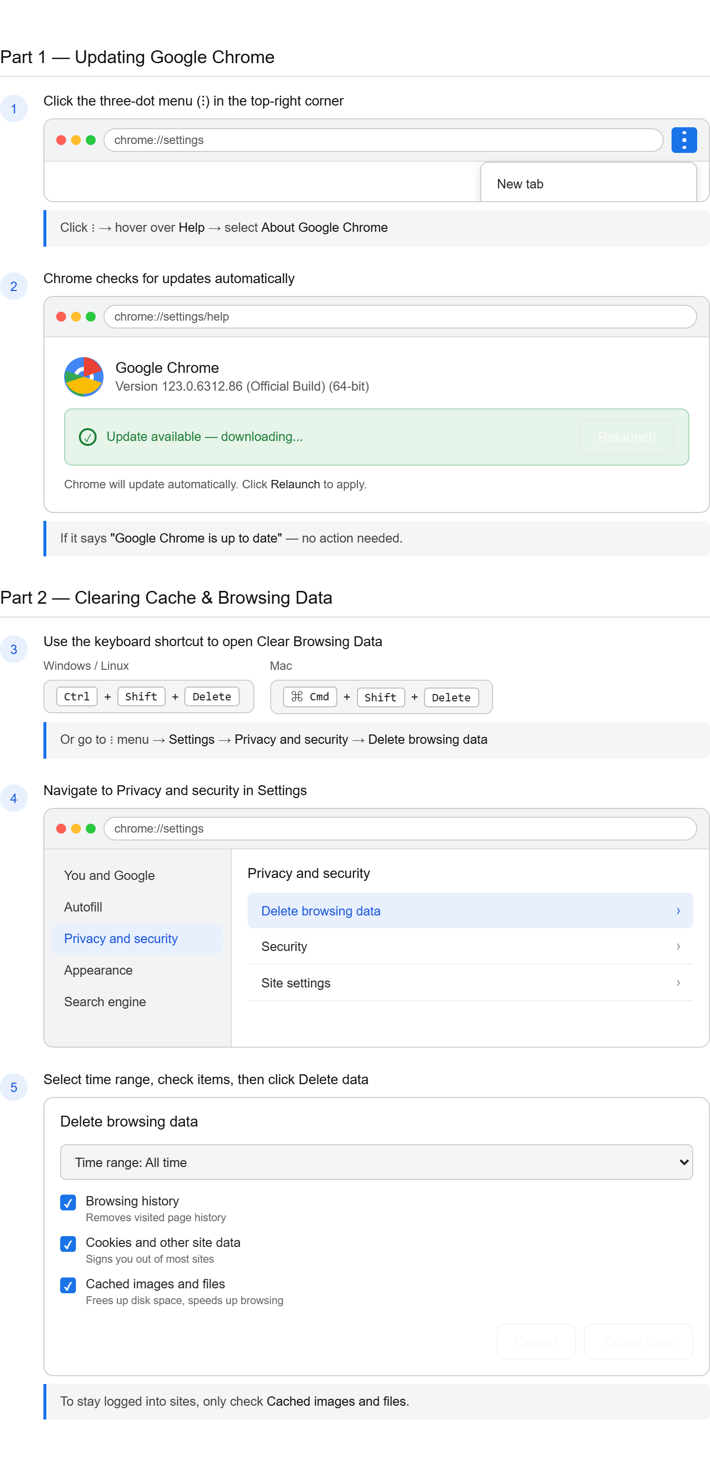 Updating Google Chrome & Clearing Cache